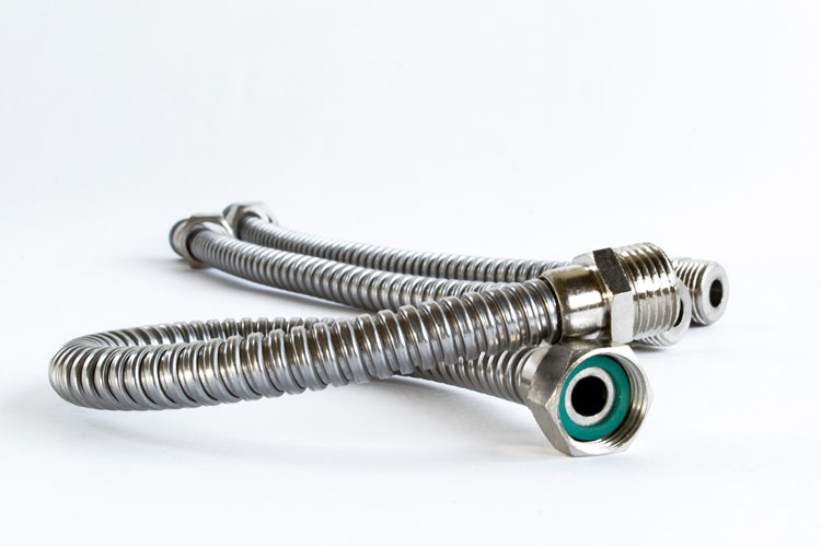 Ambos tubos (acero inoxidable y goma) se unen a los extremos de latón mecanizado mediante un sistema exclusivo de encastre y cierre que le permite soportar altas presiones.